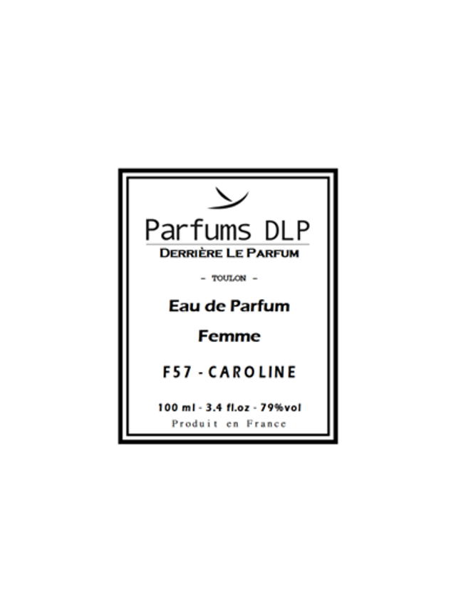 F57 - CAROLINE est un parfum Oriental Floral pour femme. Les notes de tête sont Amande, Café, Bergamote et Citron ; les notes de cœur sont Jasmin Sambac, Tubéreuse, Racine d'iris, Rose de Bulgarie et Fleur d’oranger ; les notes de fond sont Fève de tonka, Cacao, Bois de santal, Vanille, Praliné, Cannelle, Cèdre, Bois de cachemire, Patchouli, Ambre et Musc.